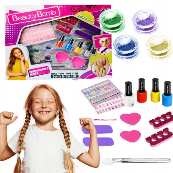 Körömformázó készlet lányoknak, lakkok, matricák, Műköröm, csillámpor