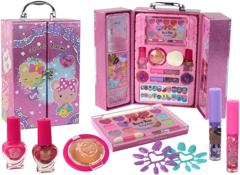 LEAN Toys Szépség Smink és Köröm Készlet Rózsaszín Bőröndben