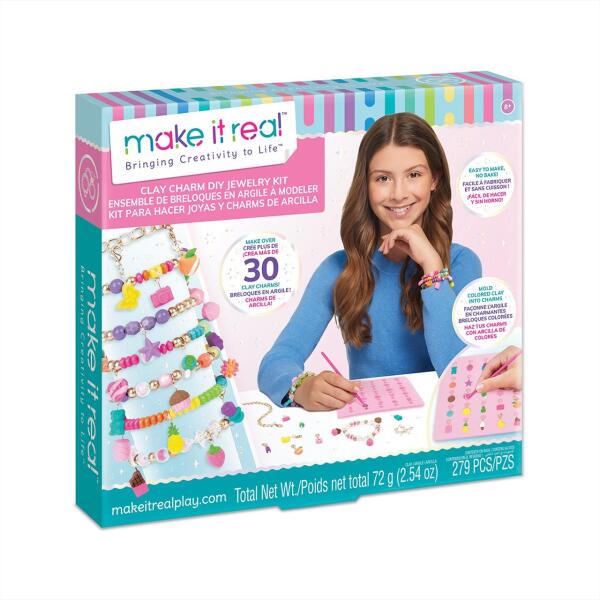 Színpompás gyöngyök és láncok. Vajon mivel dobhatnád fel még jobban a saját készítésű karkötőidet? Mit szólnál néhány egyedi charmhoz, amit te magad készíthetsz el? A Make It Real Gyurma charm ékszerkészítő készletben speciális, levegőre szármadó gyurmákat találsz. Helyezd a formatálcába a kapcsokat, majd töltsd fel gyurmával az édes gyümölcsös és nasis formákat. Amíg szárad, rendszerezheted a gyöngyöket, és elkezdheted őket a fonálra fűzni. A készlettel akár 30 karkötőt vagy más ékszert is elkészíthetsz, melyeket egyedi charmjaid tesznek különlegessé. Már elkészíteni is klassz, hát még viselni! A készlet tartalma: