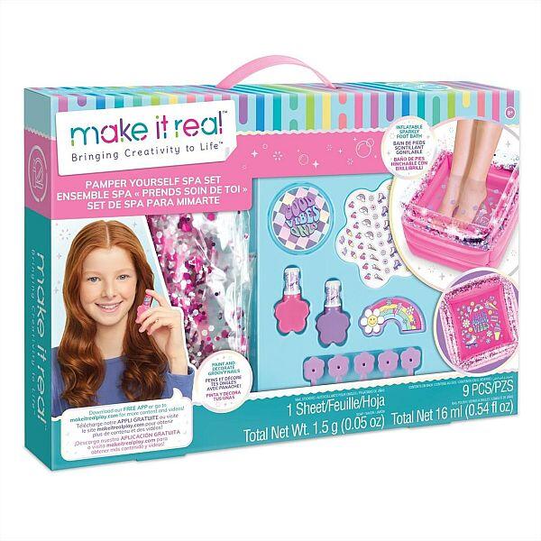 Kényeztessétek lábaitokat a meleg vizes fürdőben, majd készítsétek el a tökéletes manikűrt a körömlakkok és körömmatricák segítségével. A Make it Real Szépség szettek minden kislánynak nagy örömet okoznak, hiszen segítségükkel ők maguk is elkészíthetik a legcsajosabb sminkeket és körmöket maguknak.