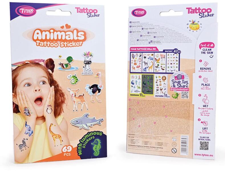 TYTOO Állatos tetoválás matrica szett - 69 db / csomag (TY50269) - hasznos-holmik