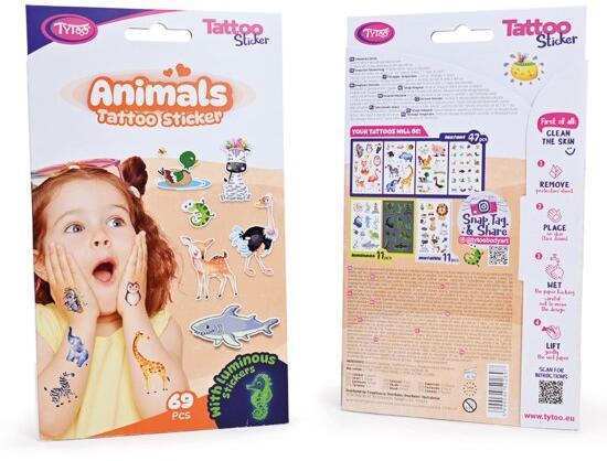 Tytoo Állatos tetoválás matrica szett - 69 db / csomag, TY50269