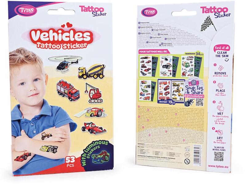 TYTOO Járművek tetoválás matrica szett - 53 db / csomag (TY50272) - hasznos-holmik
